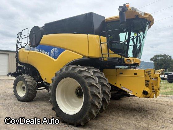 2011 NEW HOLLAND CR9060 4WD Combine. Serial number: YBG114472. Engine Hours: 3,055. Separator hours: 2,094. Rear attachment: Straw Chopper / Spreader Combo. Grain tank size: 255 bu. Crop type: Grain. Separator type: Rotor. Terrain type: Conventional. Grain bin extension: Yes (Manual Fold). Front tire configuration: Duals. Horsepower: 360 HP. Drive: 4WD. Transmission type: 4 Spd. Fuel type: Diesel. Features: AC/Heat, Radio, IntelliView IV Plus II Display, IntelliSense System, Twin-Rotor, 520/85R42 Dual Drive Tires, 540/65R30 Steer Tires. Spare Unloading Auger included. High-capacity axial-flow combine built for large-scale harvesting.
